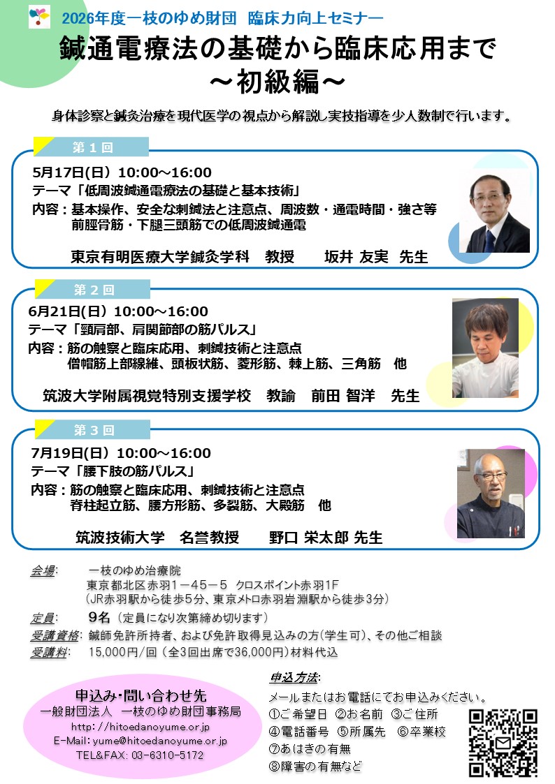 2026年 鍼通電セミナー 初級編