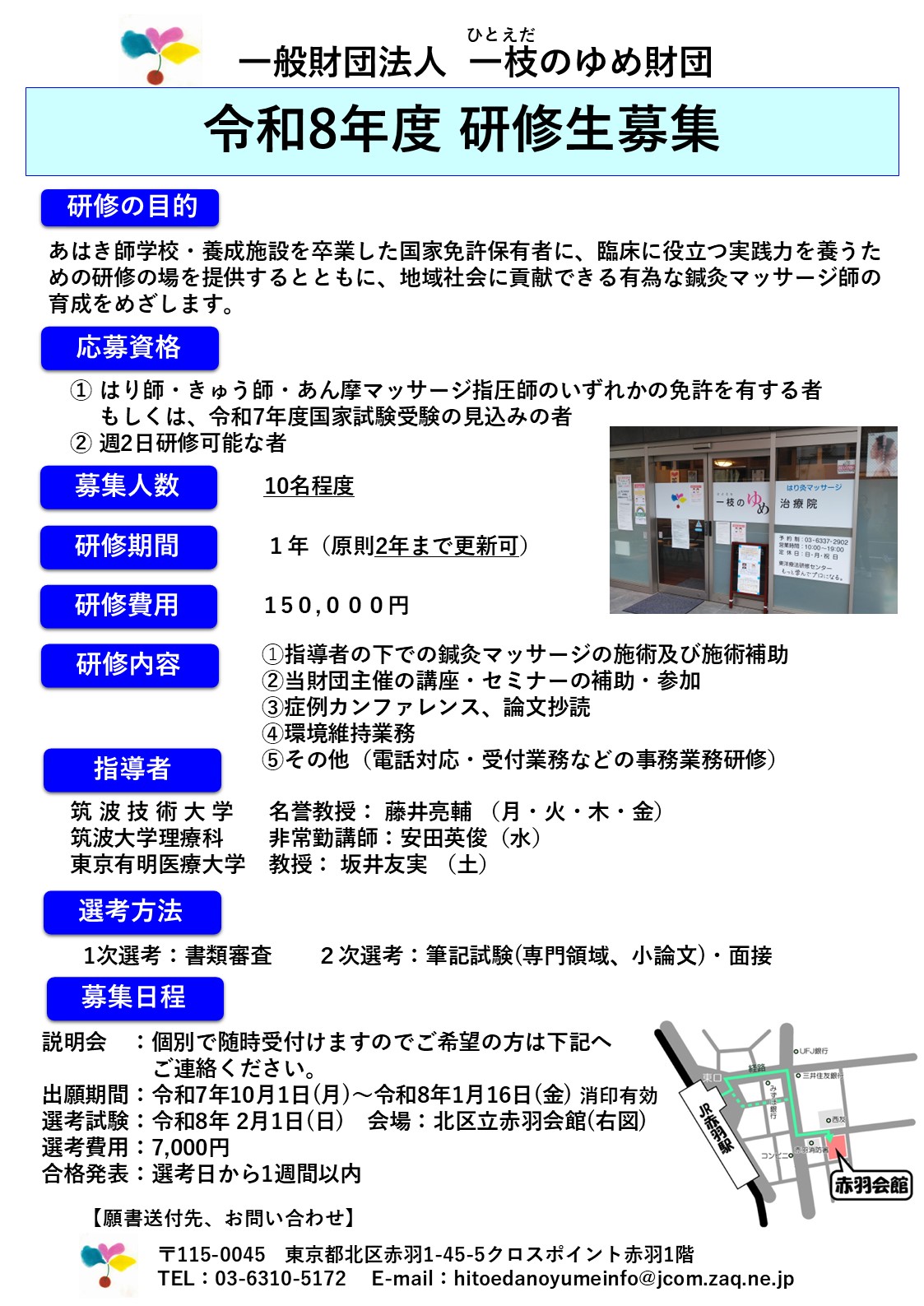応募資格:はり師きゅう師あん摩マッサージ指圧師のいずれかの免許を有する者